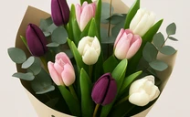 Tulpių ir eukalipto puokštė